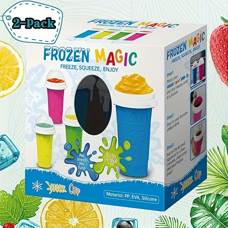 2 Pack Slushy DIY Maker Cup- TIK TOK Quick Frozen Magic Cup, Double Layers Slushie Cup, DIY Homemade Squeeze Icy Cup, Fasting Cooling Make And Serve Slushy Cup for Milk Shake, Smoothies, Juice,Ice Cream Make