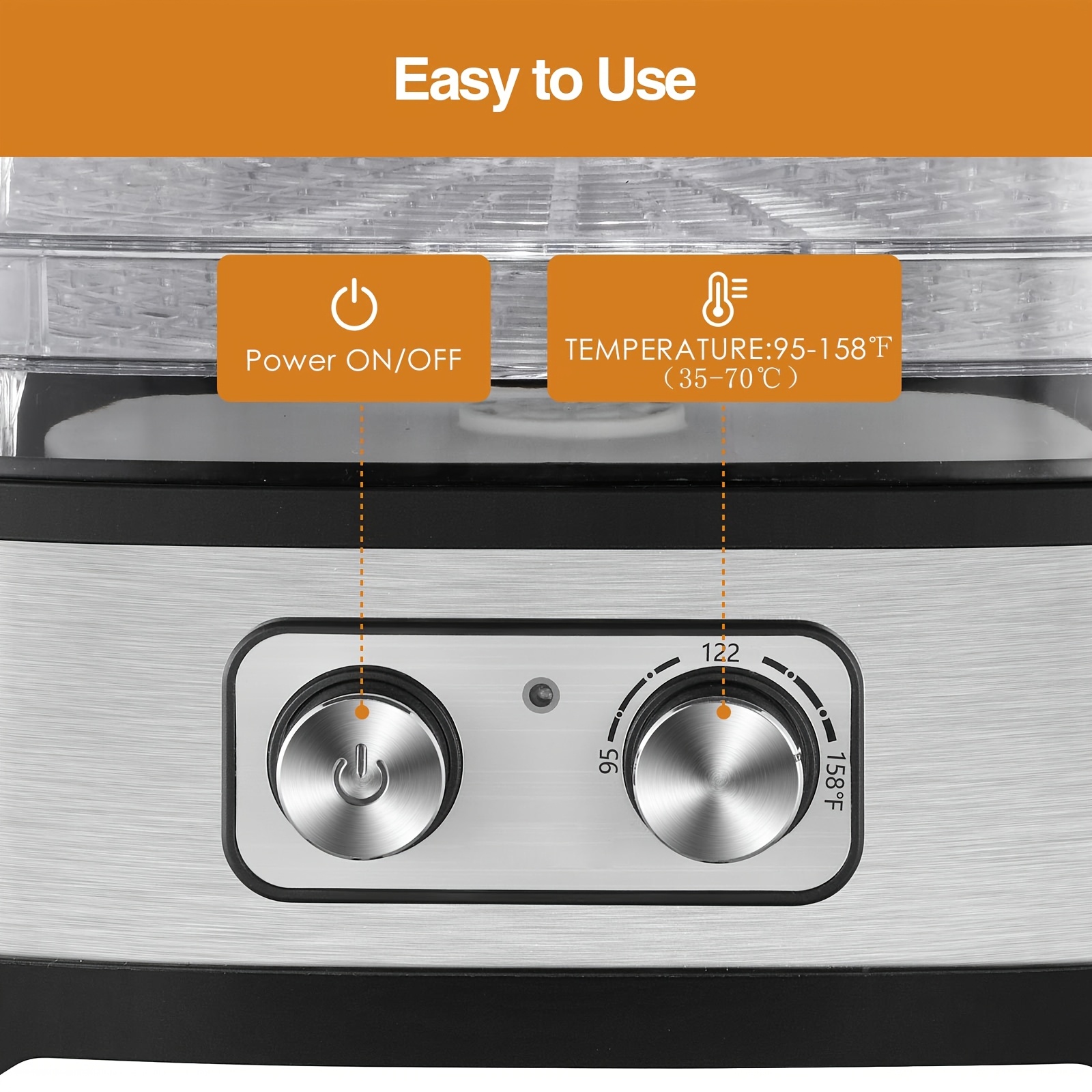 240W Stainless Steel Food Dehydrator with Temperature Control, 5 BPA-Free Trays, Dishwasher Safe Electric Dryer for Jerky, Fruits, Veggies & Herbs, Includes Recipe Book, US Plug, 120V, Dehydrators for Food