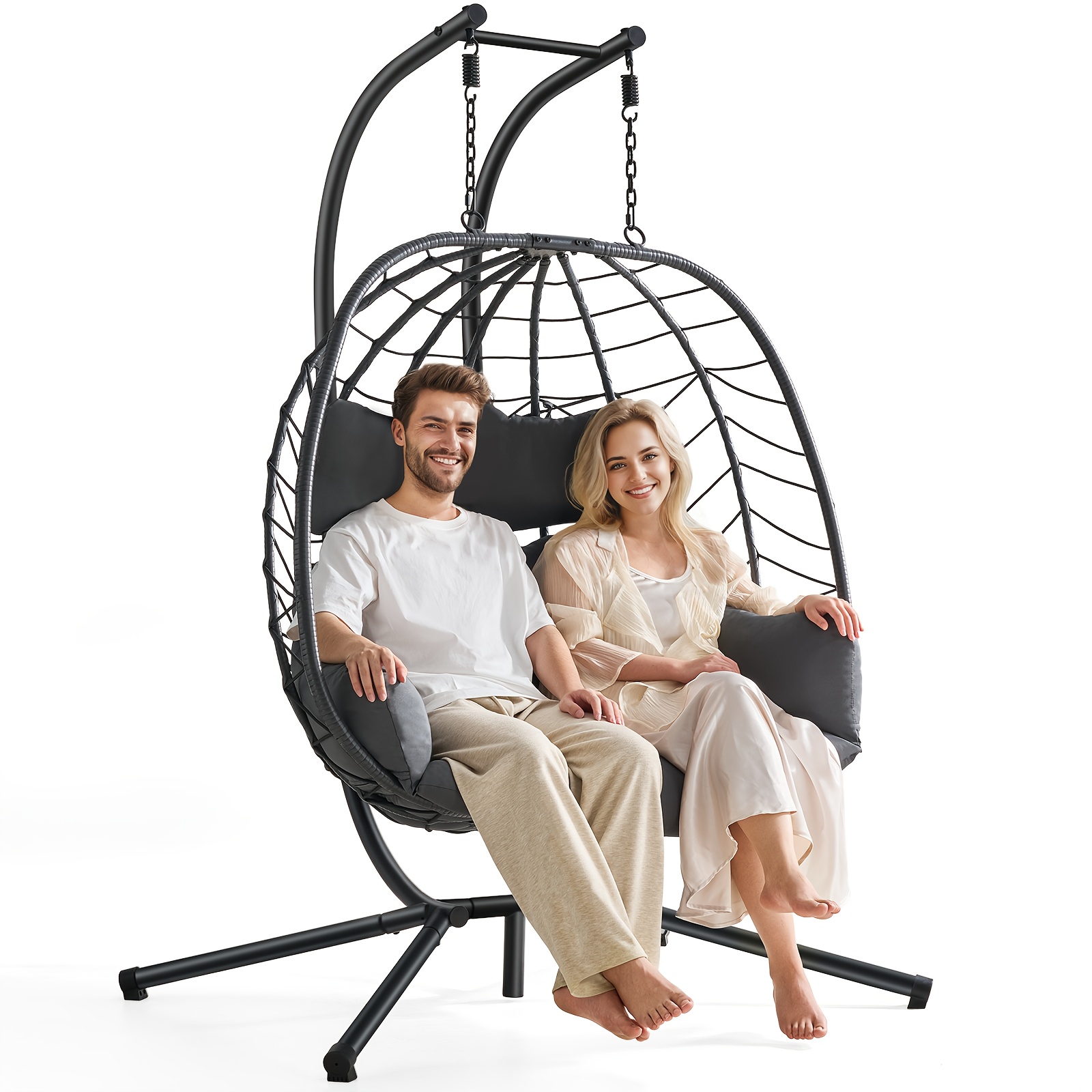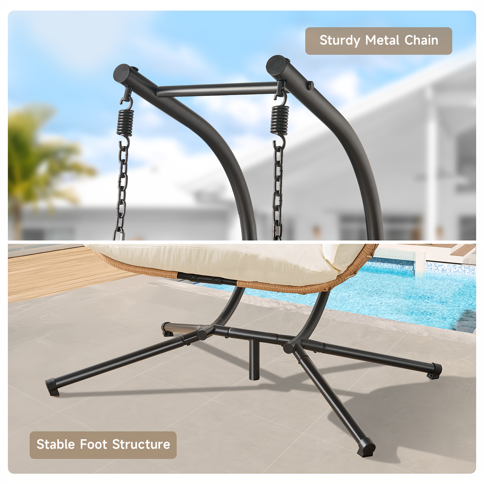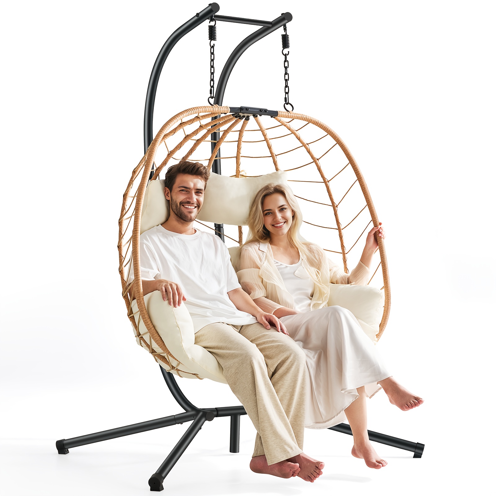 48.4 Inch Double Egg Chair With Stand, Outdoor Double Hammock Swing Chair With Cushions And Headrest, 650 Pounds Weight Capacity, Suitable For Patio, Garden, Poolside (Yellow Beige)