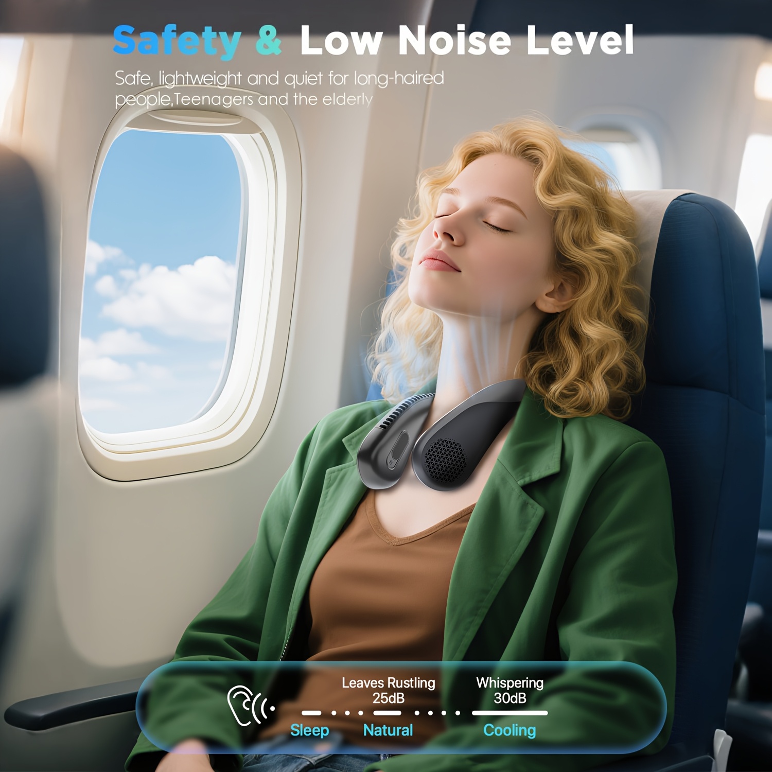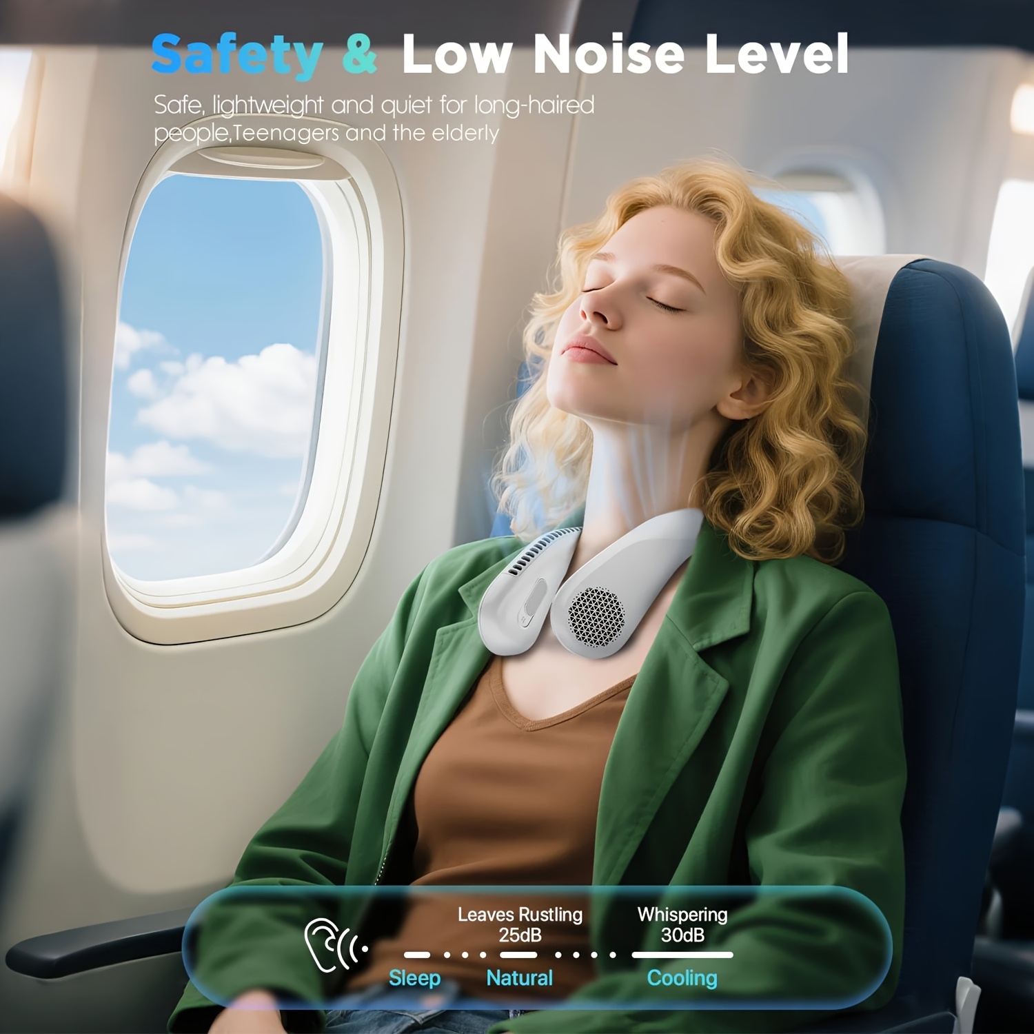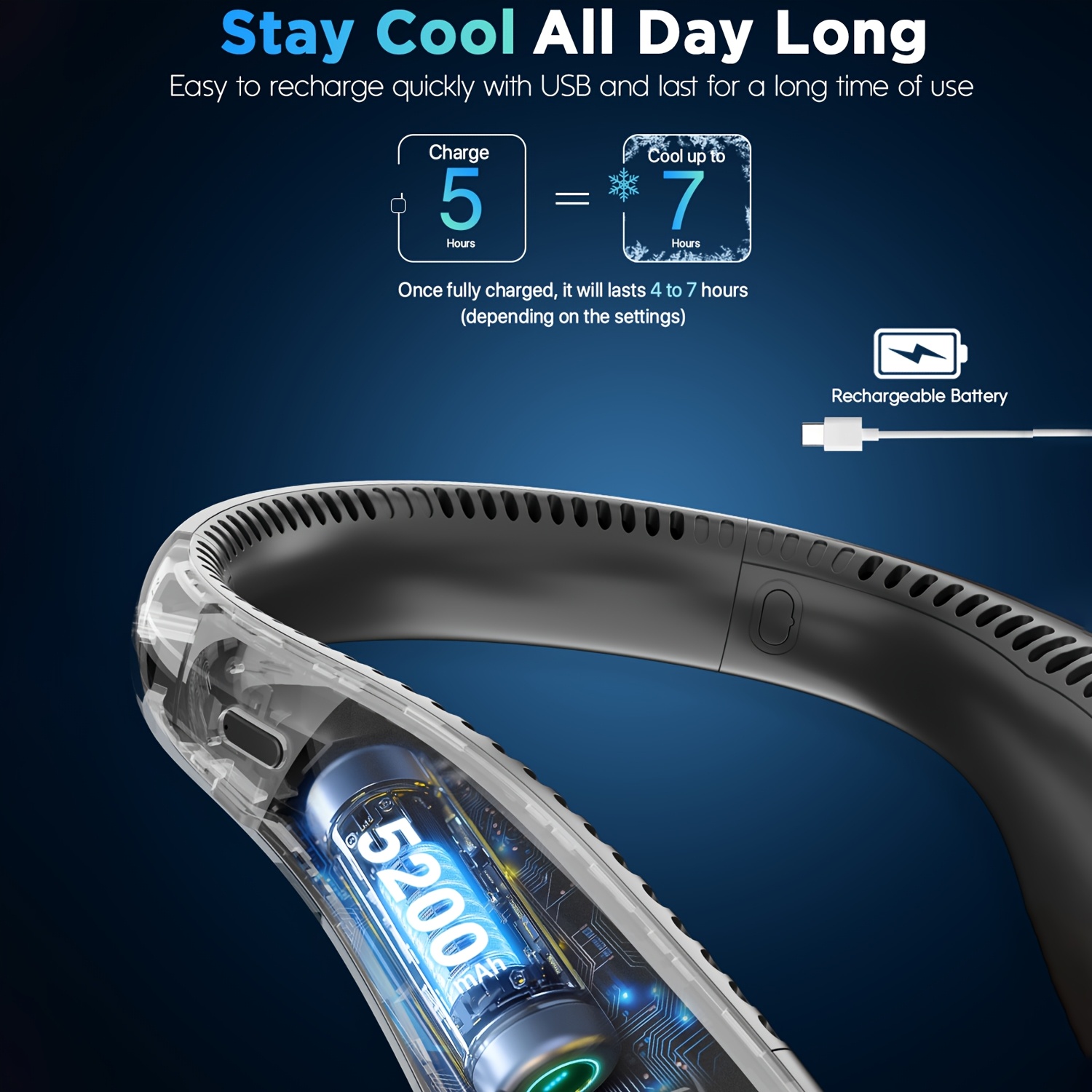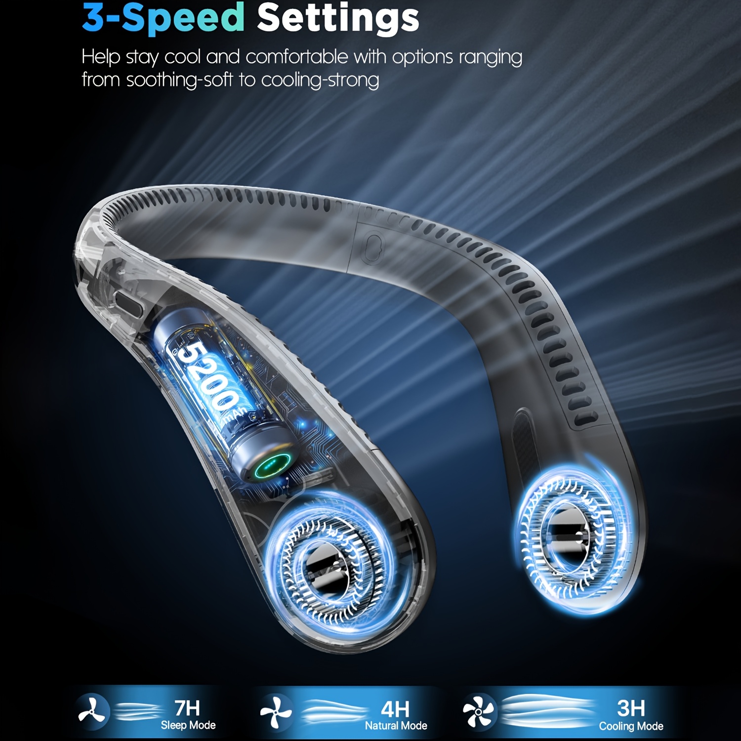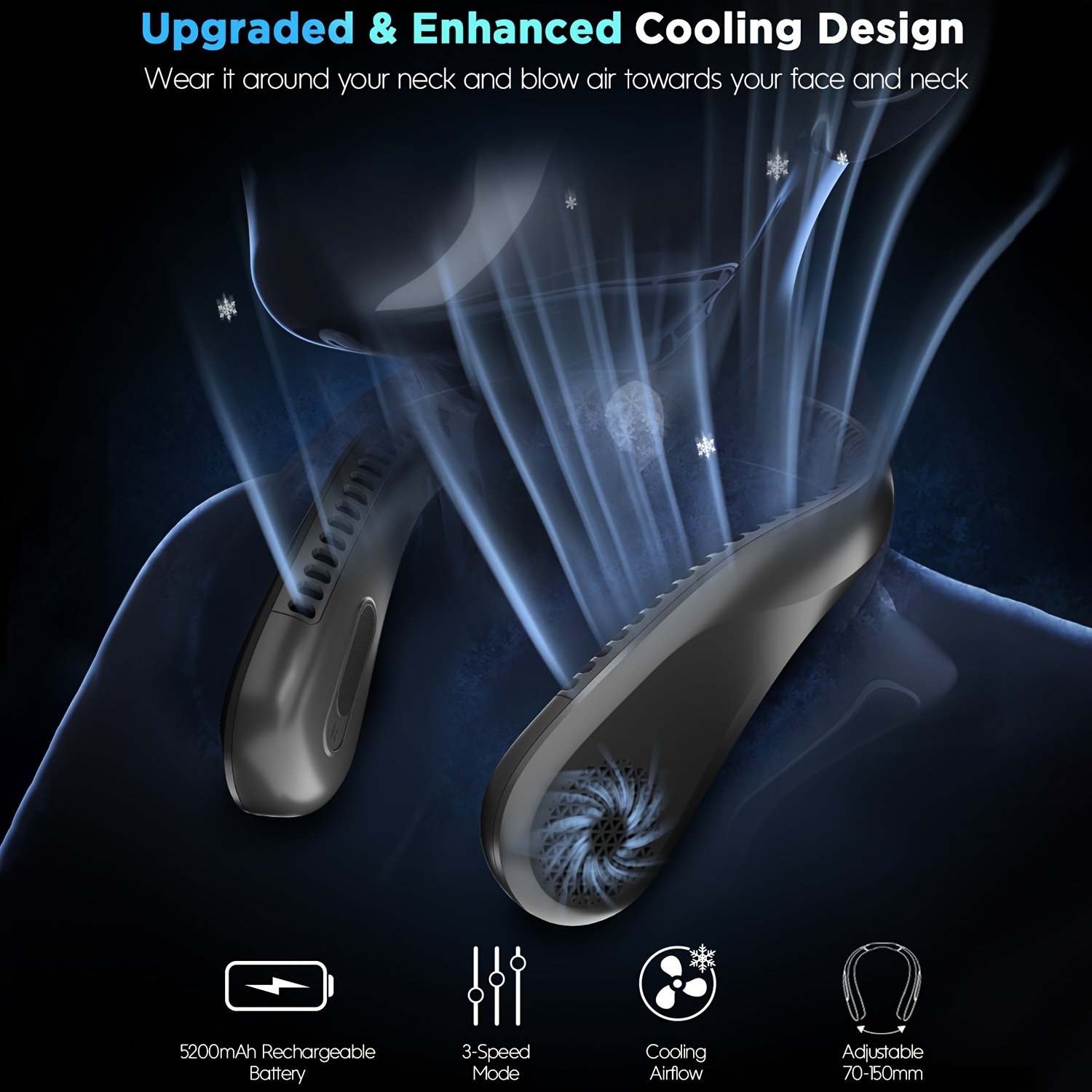 [5200mAh Portable Neck Fan] Rechargeable Portable Neck Fan – 5200mAh USB-Powered Hands Free Bladeless Cooling Fan With 3 Speed | Compact & Lightweight For Outdoor, Travel, Picnic, BBQ, Fishing, Jobsite | Battery Powered (4-16Hrs)