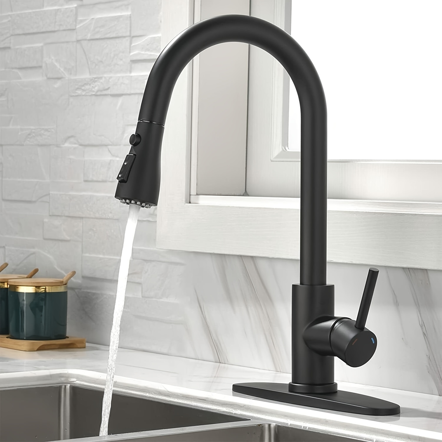 [Commercial Kitchen Faucet] 1pc Commercial Stainless Steel Kitchen Faucet with Pull-Down Spray | High Arc Single Handle Brushed Nickel Sink Faucet with Deck – Suitable for Bar Laundry RV Farmhouse (Matte Black & Brushed Nickel, Non-Potable Water Use)
