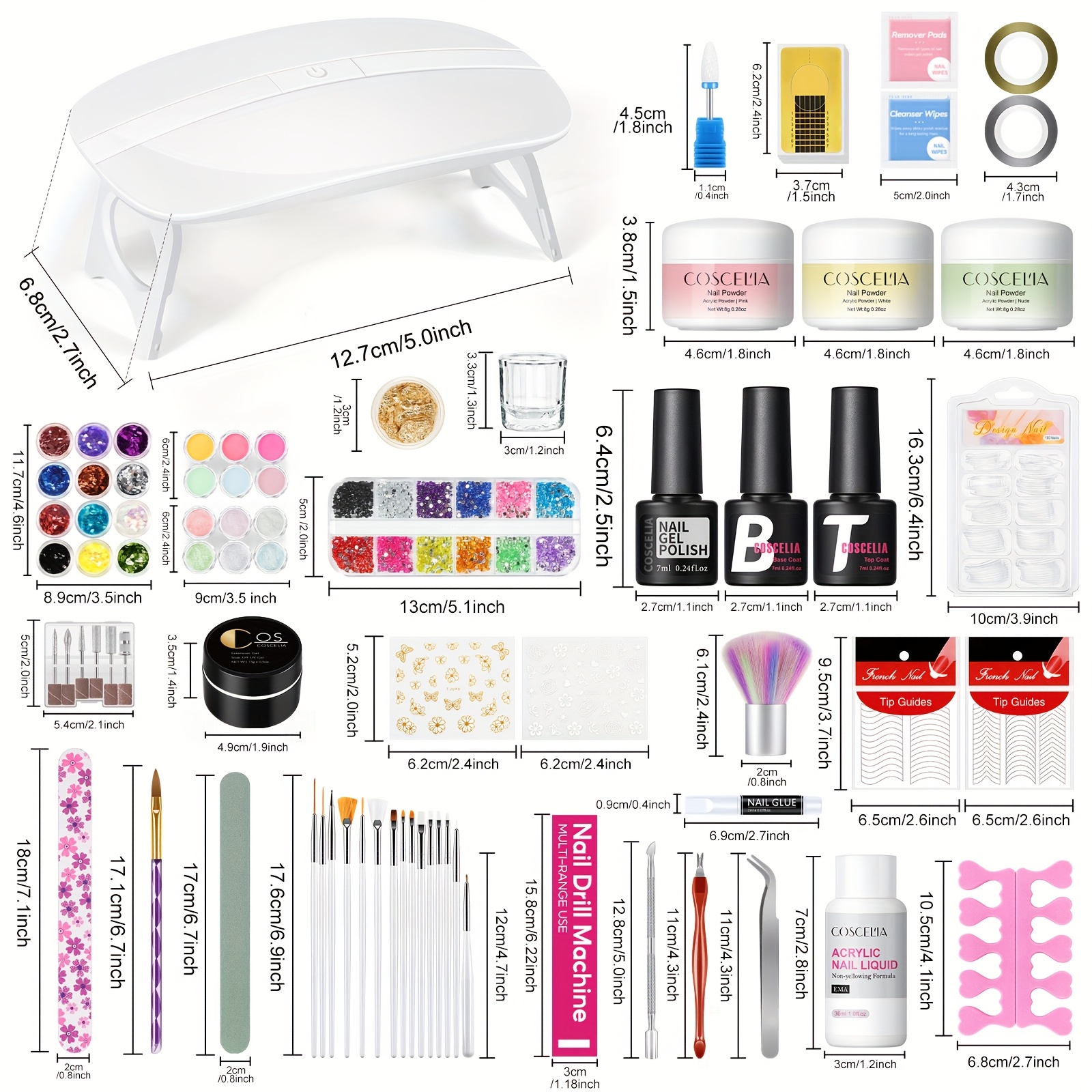 [Coscelia Acrylic Nail Kit] Coscelia Acrylic Nail Kit – 3D Art Manicure Supplies for Beginners with Everything: Acrylic Powder Set, Electric Nail Drill Set, Polish Pen, File Kit, Nail Lamp, Manicure Dryer Lamp