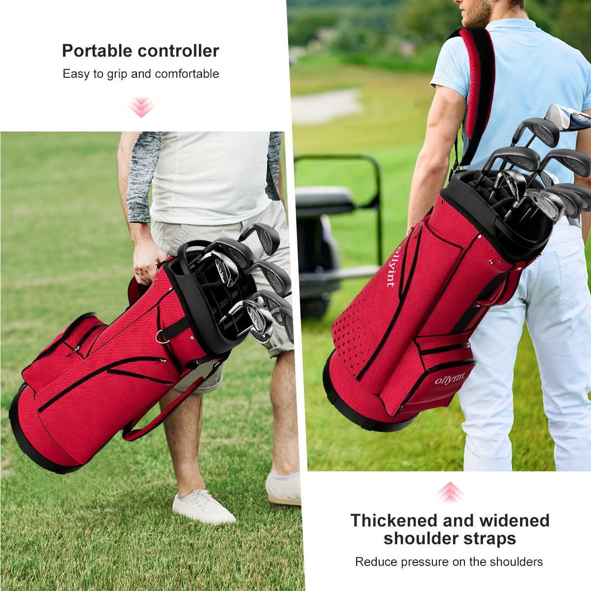 [High Quality, Stylish Golf Bag] High Quality, Stylish Golf Bag with 14-Way Organizer, Silent Top, Multiple Compartments – Black/Red Design for Easy Storage And Transport, Rain Cap, Wear-resistant, Durable