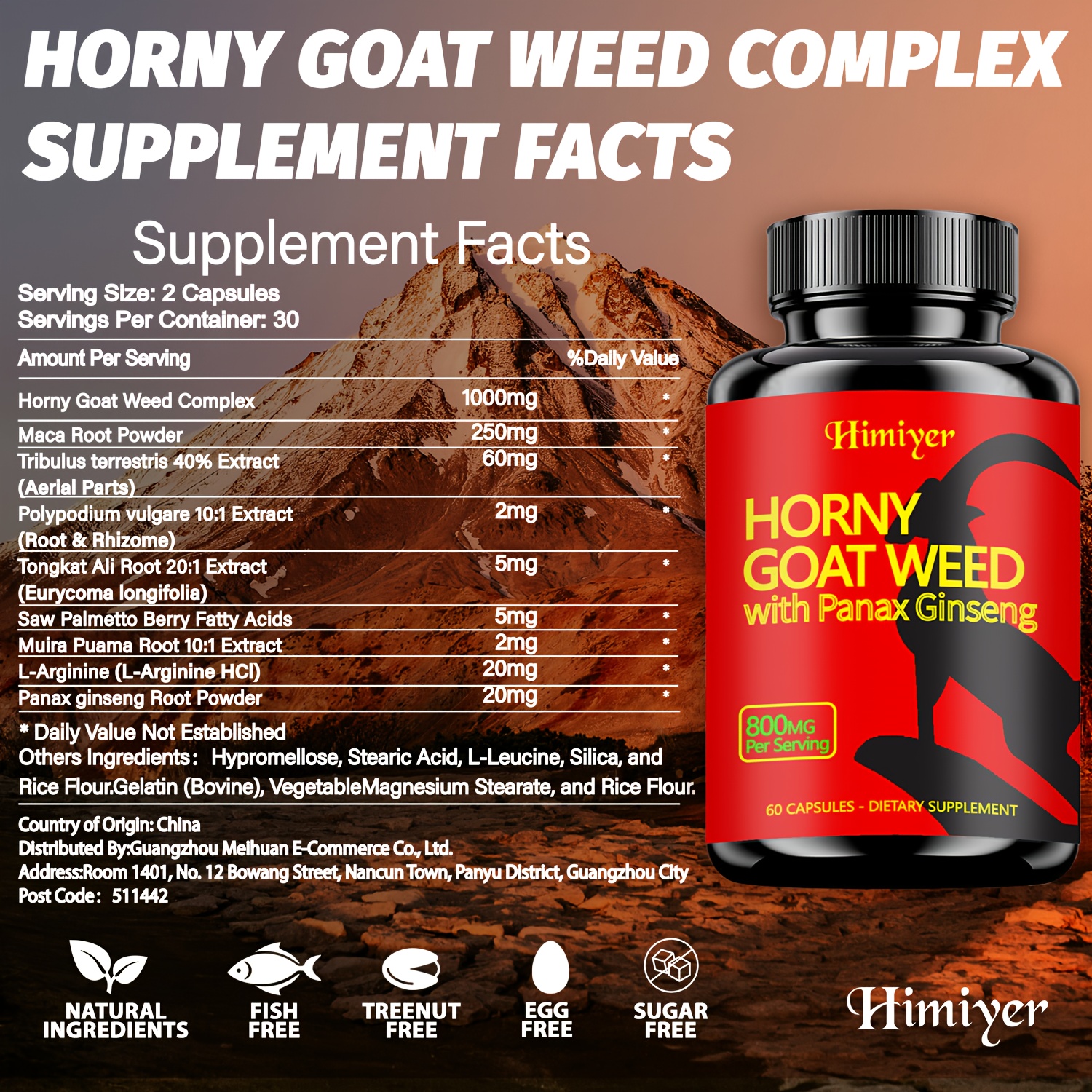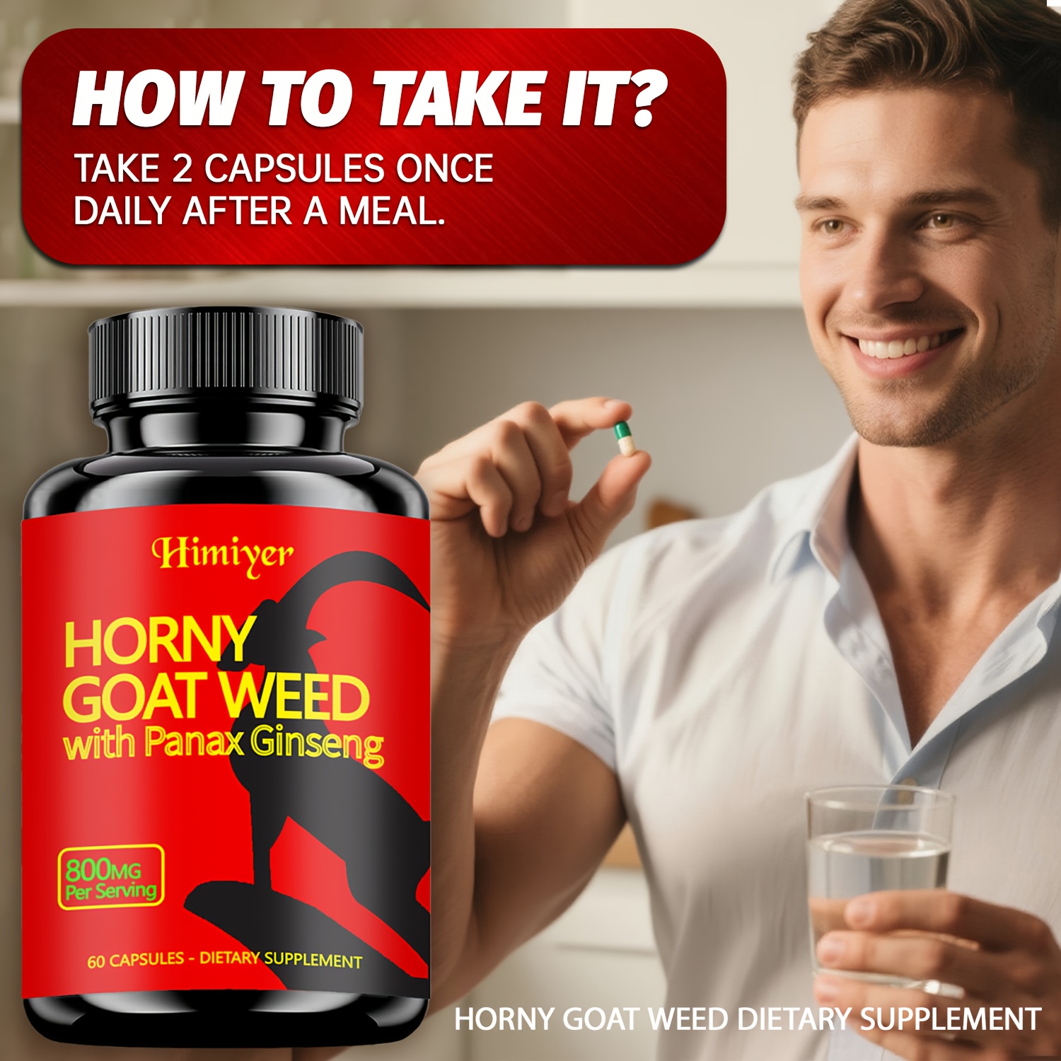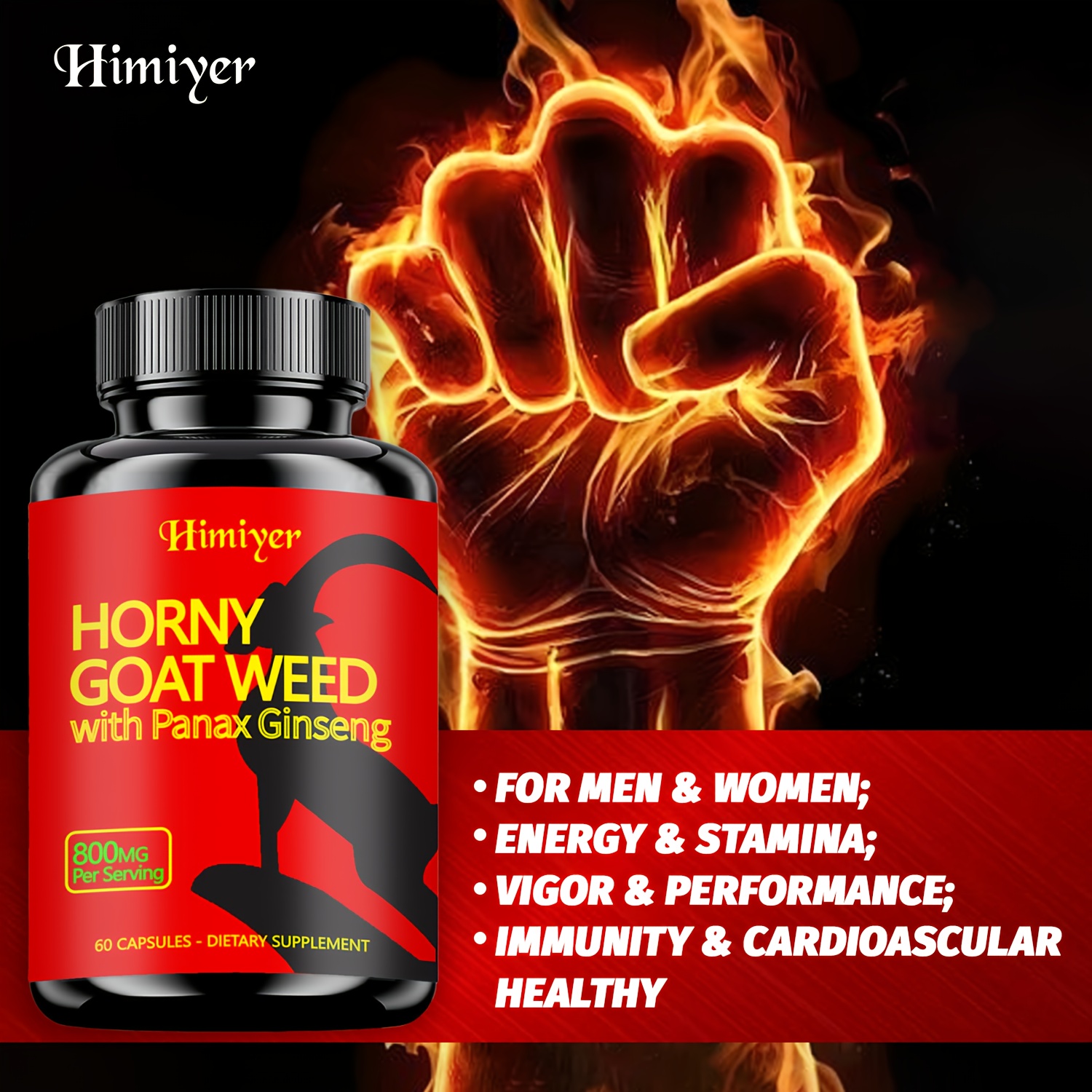 HIMIYER Men’S Horny Goat Weed & Panax Ginseng Capsules – High-Potency Natural Supplement for Energy, Immunity & Cardiovascular Health, 2.0g Each, 30 Capsules, Plant-Based Ingredients, Day & Night Use, Energy Booster, Bold Packaging, Quality Packaging, Durable Packaging, Natural Ingredients, Immune Support, Bold Design, High Potency, Immune Support