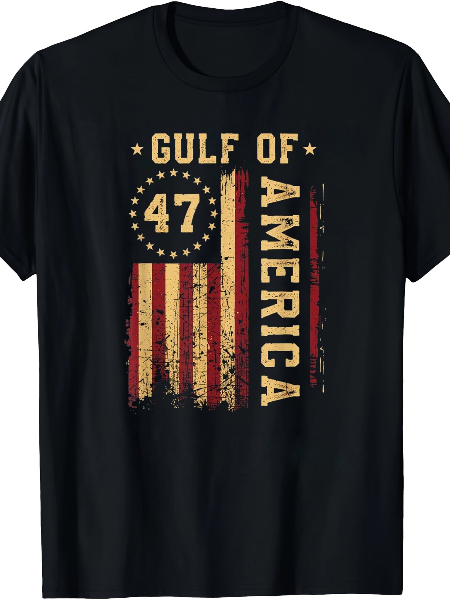 Men’S Patriotic Gulf of America Flag Graphic T-Shirt – 100% Cotton Short Sleeve Crew Neck Tee with Distressed Vintage Design, Black Casual Shirt for 4th of July, Birthdays, Sports & Holiday Gifts, Sports Tshirt