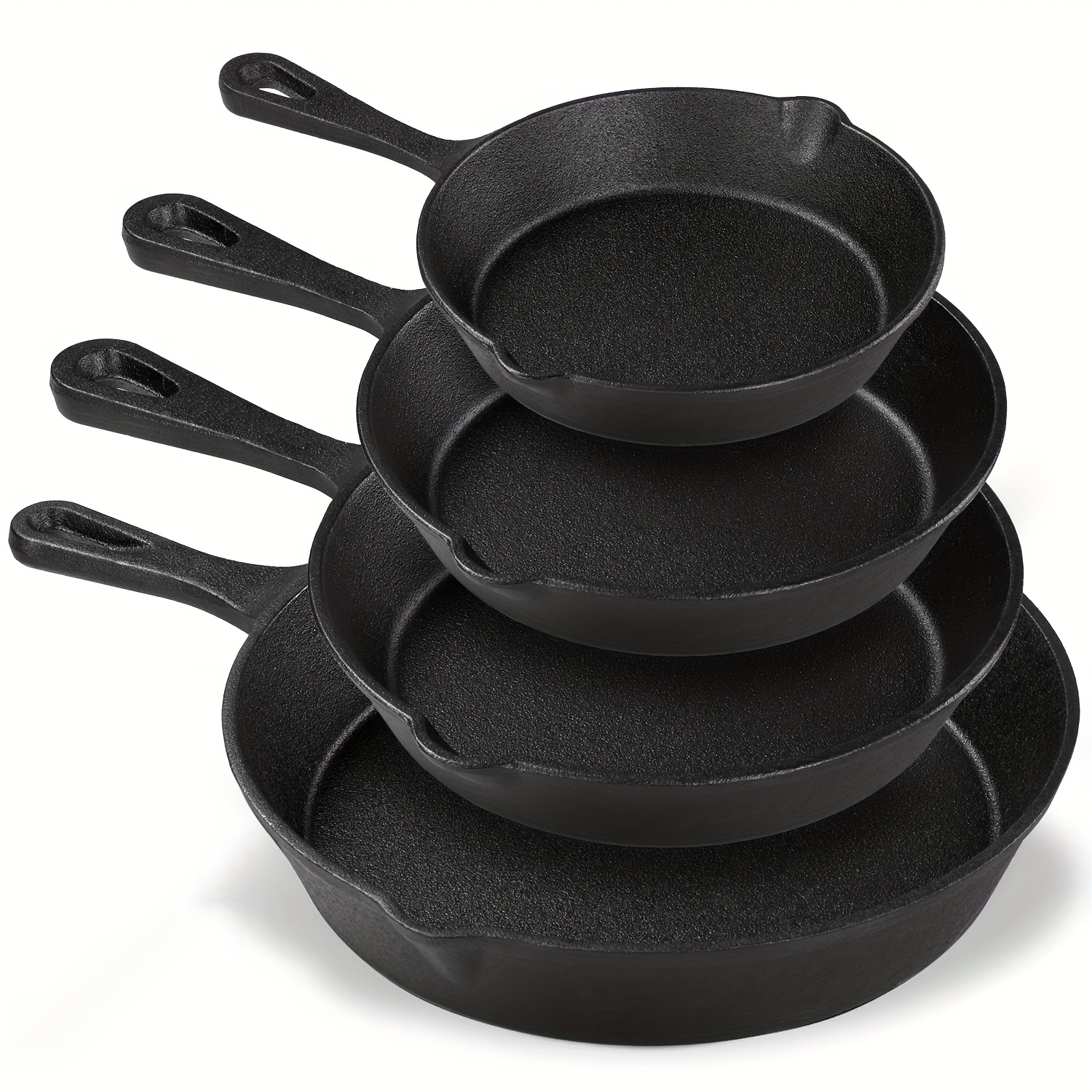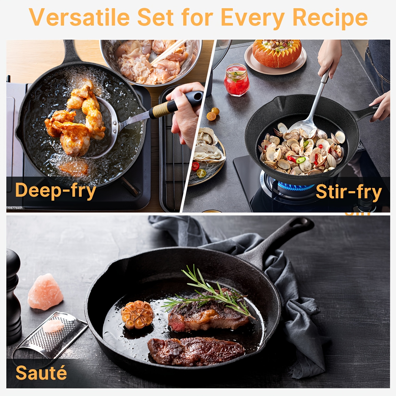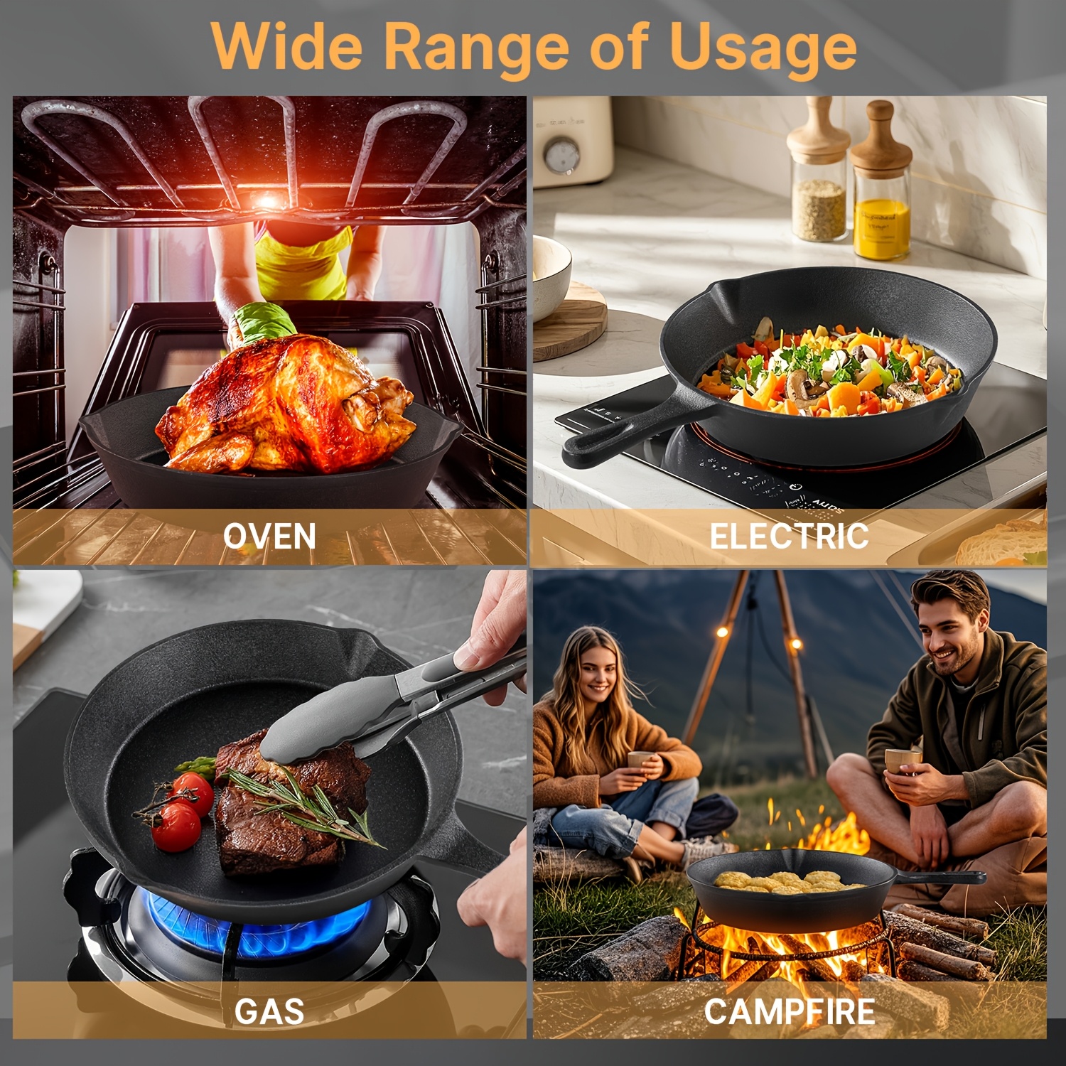[Pre-Seasoned Cast Iron Skillet] 3pcs/4pcs Heavy-Duty Pre-Seasoned Cast Iron Skillet Set – Non-Stick, Multi-Functional with Ergonomic Handles – for Superior Heat Retention, Indoor and Outdoor Cooking