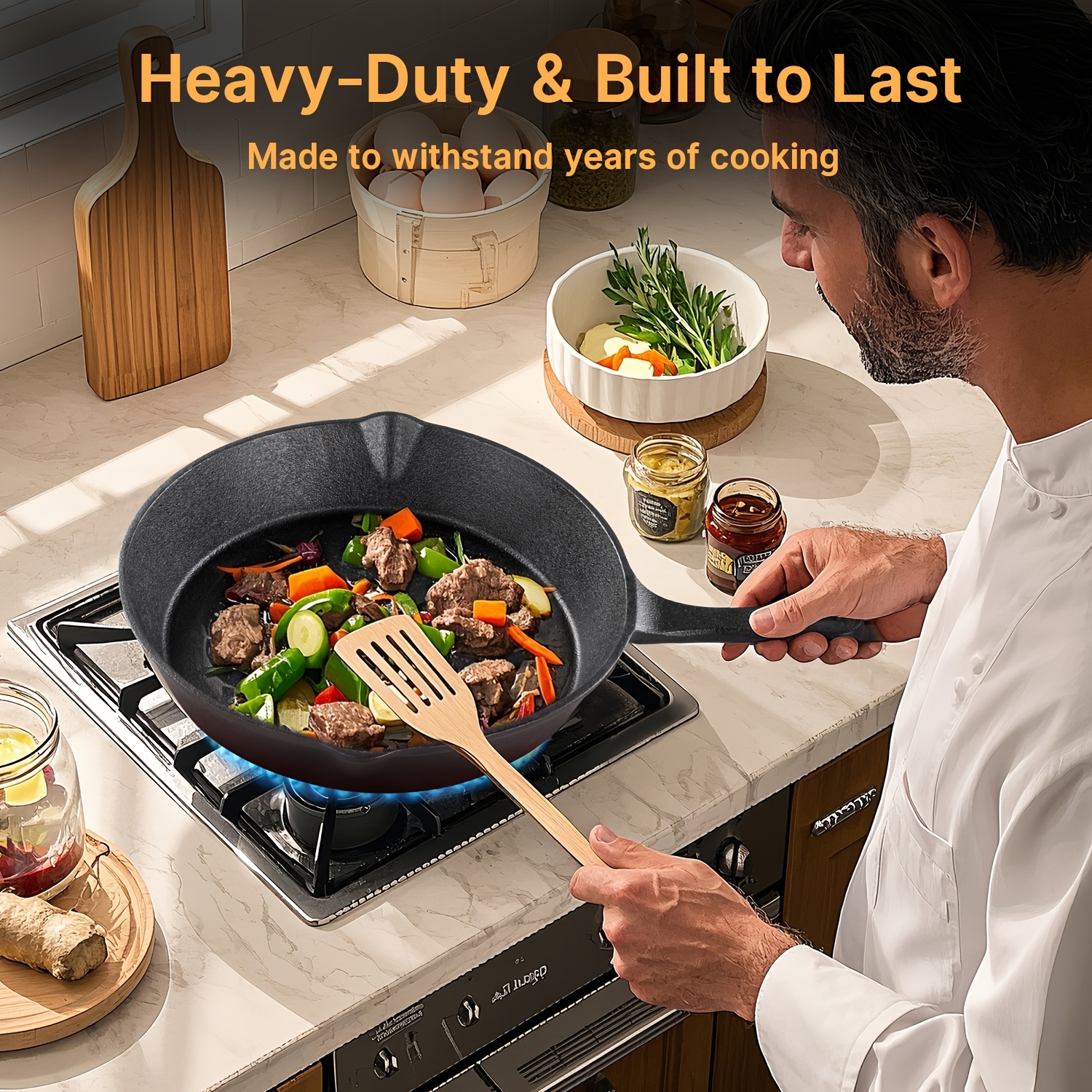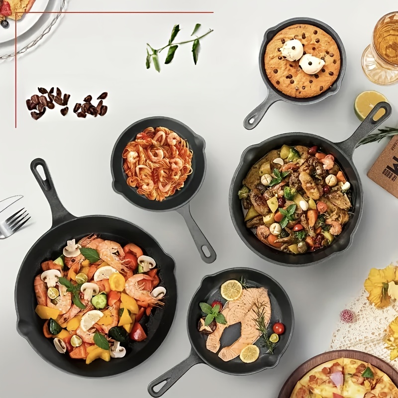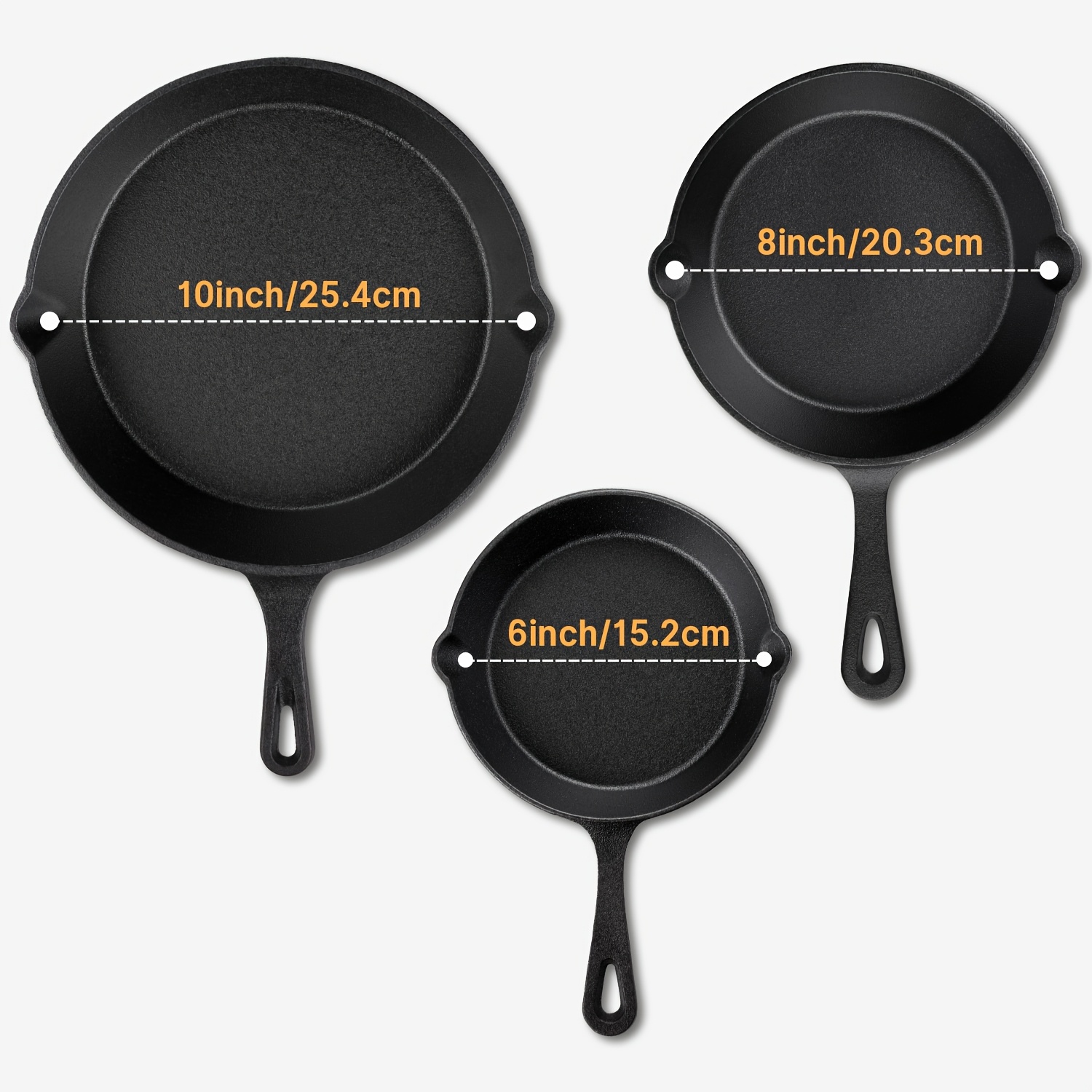 [Pre-Seasoned Cast Iron Skillet] 3pcs/4pcs Heavy-Duty Pre-Seasoned Cast Iron Skillet Set – Non-Stick, Multi-Functional with Ergonomic Handles – for Superior Heat Retention, Indoor and Outdoor Cooking