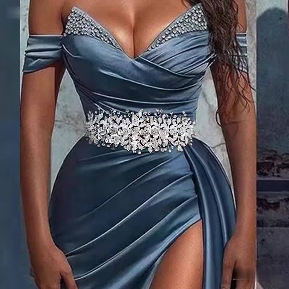 [Rhinestone Waist Belt] Rhinestone Belt, Elegant Short Waist Accessory | Handmade Adornment, Thin Floral Craftsmanship, Waist Cincher for Brides, SH349