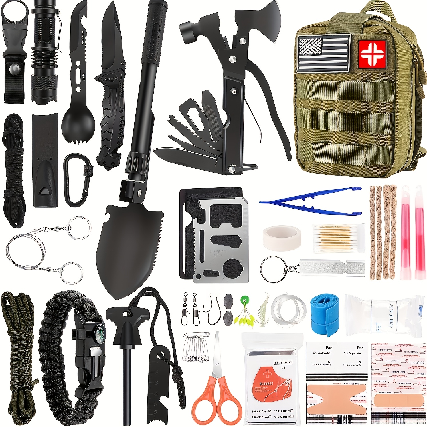 Survival Kit And First Aid Kit 137/170in One, Emergency Supplies, Camping Accessories, Upgraded Molle Kit Including Axe, Shovel, Knife, Lantern. Suitable for Men Outdoor Adventure, Camping, Hiking, Fishing, Hunting, Hiking, Outdoor Travel Carry