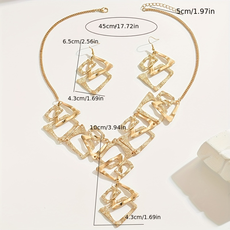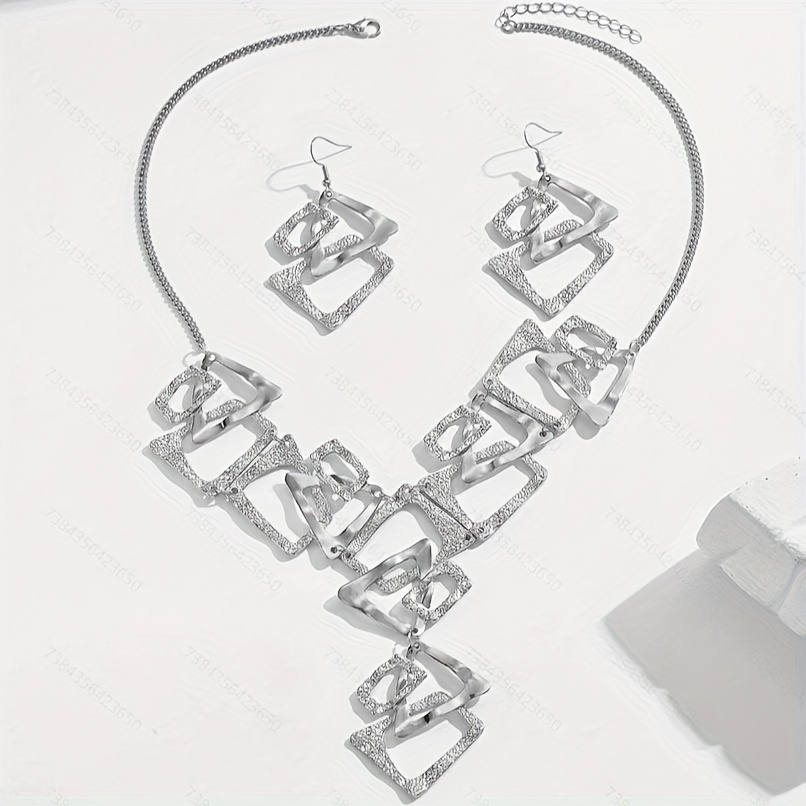 Three-Piece Set – Y-Shaped Necklace and Earrings – Irregular Geometric Shapes, Suitable for Seasonal Wear and Everyday Use