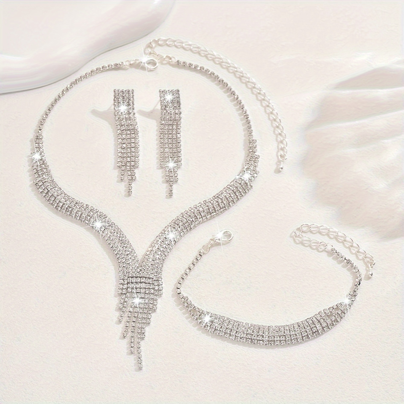 [V-shaped Tassel Necklace] Silver Plated Copper V-shaped Tassel Necklace | Rhinestone Inlaid, Synthetic Stone, August Birthstone, Daily Party Occasion, Valentine’s Day Gift