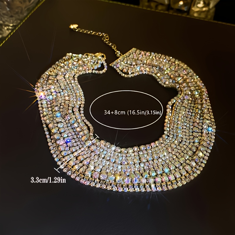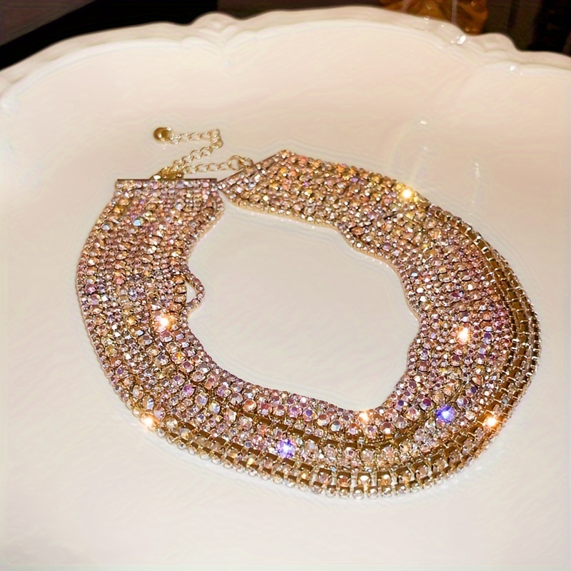 Women’s Multi-Layer Geometric Necklace – Sparkling -Coated Blingbling Statement Jewelry for Parties, Galas & Gift Giving – Year-Round Elegant Collarbone Chain, Charm Necklace, Party Accessory, Luxurious Accessory, Synthetic Gemstone, Durable Beads