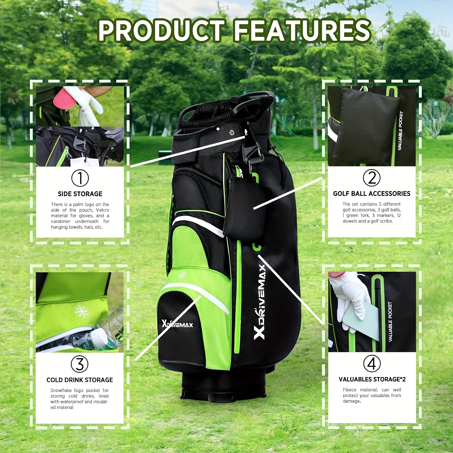 Home Golf XDriveMax Golf Cart Bag, Premium 15 Way Golf Club Bag with Rain Cover, Cooler, And Accessory Kit for Men And Women